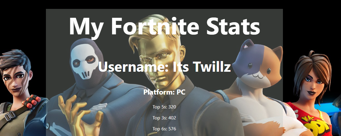 A react-redux project from scratch, dynamically displaying my users stats from a video game called Fortnite.